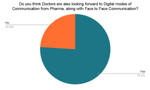 Another question being asked by PharmaState Academy, “Do you think doctors are looking forward to digital modes of contact from pharma, coupled with face-to-face communication?” and 76 percent of participants responded in the affirmative.
