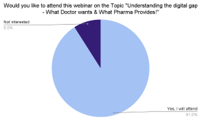 The final poll in the PharmaState Academy survey asks, “Would you like to attend a webinar on the topic of “Understanding the Digital Gap- What Doctors Want and What Pharma Provides?” which received 91 percent favorably responses for the webinar.